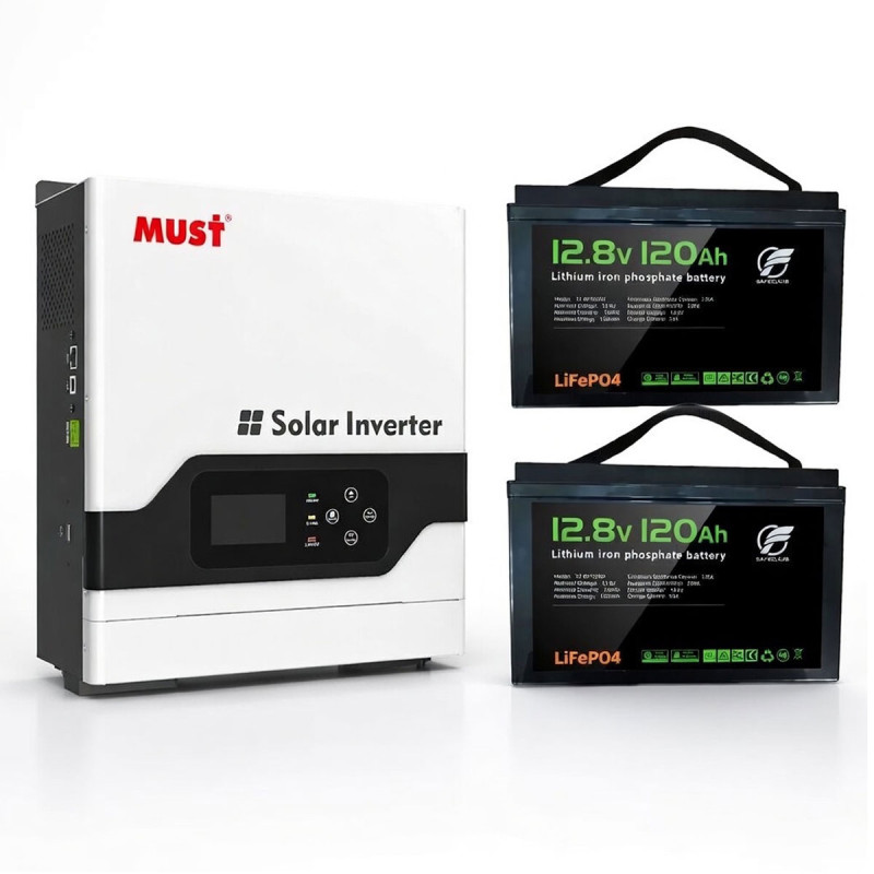 Цей комплект резервного живлення розроблений для забезпечення стабільної, безпечної та тривалої автономної роботи ваших електроприладів у період відключень електроенергії, перепадів напруги або нестабільної роботи мережі. У комплект входить потужний гібридний інвертор MUST PV18-3024 VPK (3 кВт / 24В), два сучасні літій-залізо-фосфатні акумулятори Safecloud FTLF12100 (12.8В 120Ah), а також набір кабелів для правильного підключення.